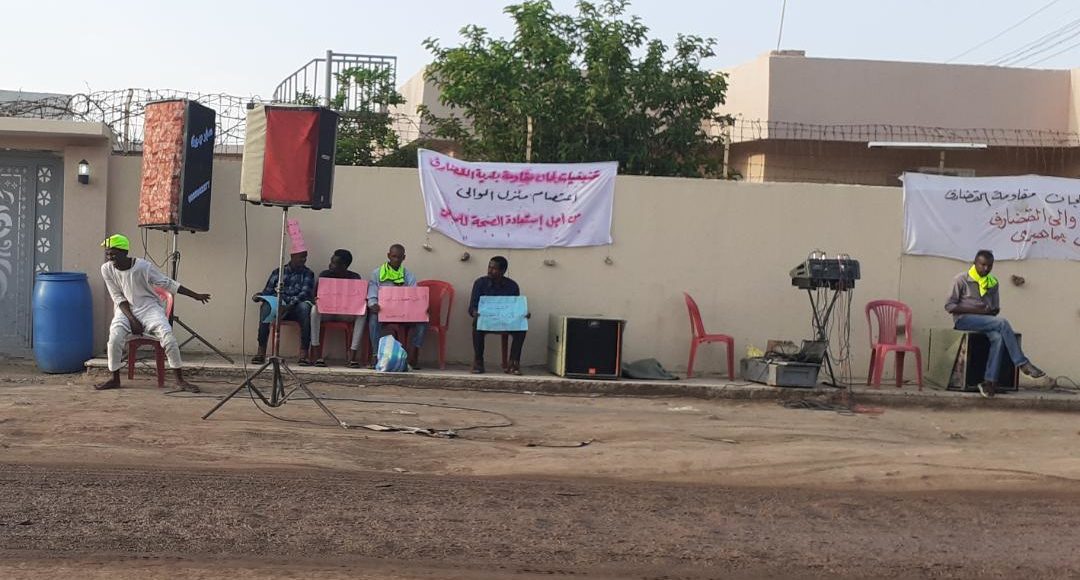 واصلت لجان المقاومة بمدينة القضارف اعتصامها أمام منزل والي الولاية لليوم الرابع على التوالي مطالبة بمعالجة الوضع الصحي بعد استقالة 88 طبيباً مطالبين بإقالة مدير عام وزارة الصحة .وندد المعتصمون بما وصفوه بانهيار النظام الصحي وخلو المستشفيات الحكومية من الأطباء ، وأوضحوا إن مبادرة لجان المقاومة لمعالجة الأزمة بين حكومة الولاية والأطباء فشلت بسبب تعنت حكومة الولاية