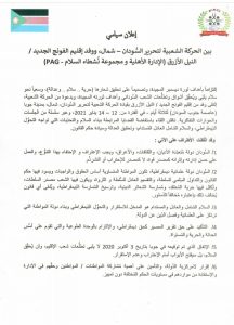 إعلان سياسي بين الحركة الشعبية لتحرير السُّودان – شمال، ووفد إقليم الفونج الجديد / النيل الأزرق (الإدارة الأهلية و مجموعة نُشطاء السلام – PAG)