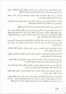 14/ الإلتزام بالمُشاركة العادلة للشباب، وإدماجهم في الفضاء السِّياسي، الاقتصادي، الإجتماعي، والثقافي، بإعتبارهم الركيزة الأساسية لقوى التغيير.
