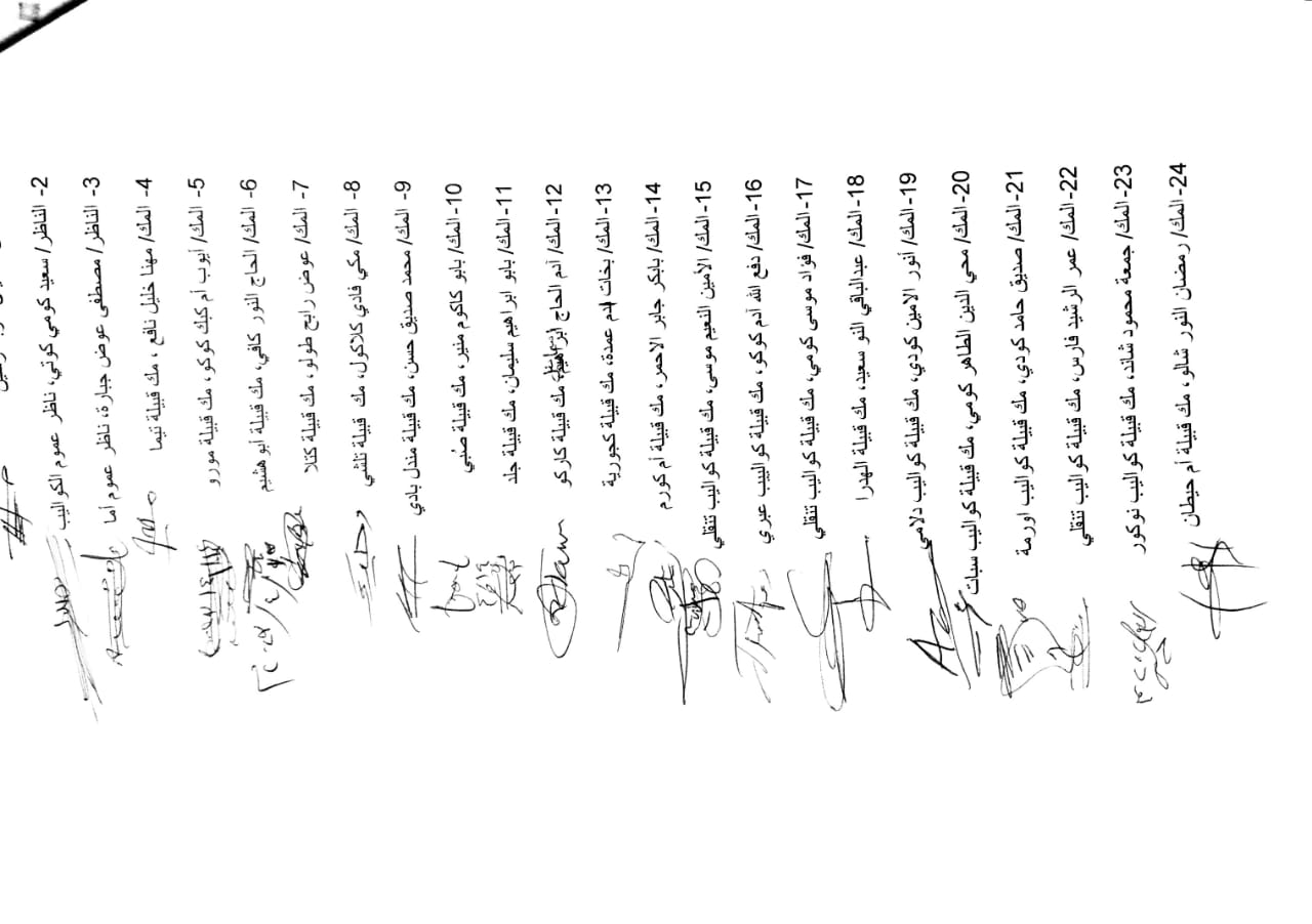 سادساً: ستتصدى الإدارة الأهلية وبحسم لأي إستهداف ممنهج ضد أي من قبائل النوبة داخل الإقليم وخارجه.