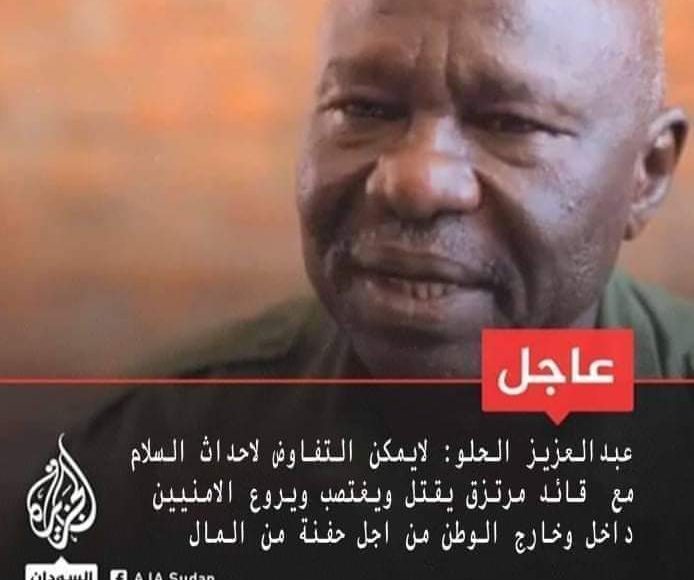اتهمت الحركة الشعبية شمال دوائر وجهات وصفتها بالمعلومة لديها تقوم بالترويج للأخبار الكاذبة والتصريحات المفبركة وذلك لغرض معلوم وكذبت في ذات الوقت ماراج عن تصريح رئيس الحركة الشعبية القائد عبدالعزيز الحلو وأكدت في بيان لها ممهور بتوقيع الناطق الرسمي جابر كمندان كومي أن الحلو لم يُصرِّح لقناة الجزيرة أو غيرها من القنوات واوضح البيان طالعنا في وسائل التواصل الإجتماعي خبراً مُفبركاً منسوب للقائد/ عبد العزيز آدم الحلو – رئيس الحركة الشعبية والقائد العام للجيش الشَّعبي لتحرير السُّودان – شمال يتعلَّق بقائد قوات الدَّعم السريع محمد حمدان دقلو (حميدتي). وقد نُسب الخبر إلى قناة الجزيرة القطرية. وقال كمندان موقفنا من قائد قوات الدَّعم السريع هو موقف واضح و مُعلن و يتعلَّق بالجرائم التي تقوم بها قواته بقتل المواطنين الأبرياء، ثم رئاسته لوفد الحكومة المُفاوض.