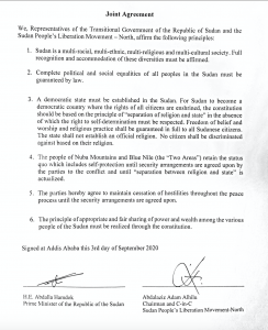 الموقع الاليكترونى للحركة الشعبية ينشر وثيقة اتفاق إعلان المبادئ العامة الموقعة بين رئيس الوزراء السودانى د.عبدالله حمدوك ورئيس الحركة الشعبية _شمال القائد عبدالعزيز ادم الحلو