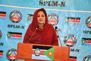 ودعت عضو تحالف مؤتمر البجا التصحيحي الذين يتحدثون في الخرطوم و يصفون موقف الحركة الشعبية التفاوضى بالمتصلب و التعجيزى و أن مطالبتها بالعلمانية فيه تطرف و أنها غير جادة في تحقيق السلام و أن ليس من حقها المطالبة بالعلمانية لأن ليس هنالك دستور، و أن عليها الانتظار إلى حين انعقاد المؤتمر الدستورى للمطالبة بالعلمانية و تقرير المصير أن يأتوا الى جبال النوبة ليروا بأنفسهم ماذا تعني الدولة العلمانية، ماذا يعنى التعايش السلمي بوجود مسلم و مسيحى و لا ديني في منزل واحد، دولة قانون تحترم النظام، تحترم المرأة و الطفل، و تحترم حق التعبير . رسالتى لهم أن ياتوا ليروا بأنفسهم تجربة الحركة الشعبية لتحرير السودان بقيادة الحلو ليجربوا ماذا يعنى الحكم الديمقراطى الحقيقى و المسنود بإرادة الشعب.