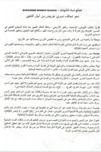 مُرتكزين على إرث المرأة السُّودانية في مُقاومة كافة أشكال البطش والقهر والإستبداد، ومُساهمتها الكبيرة في ثورة ديسمبر المجيدة 2018؛