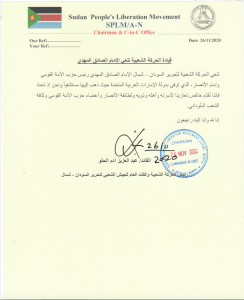 تنعي الحركة الشعبية لتحرير السودان – شمال الإمام الصادق المهدي رئيس حزب الأمة القومي وإمام الأنصار، الذي توفى بدولة الإمارات العربية المتحدة حيث ذهب إليها مستشفياً، ونحن إذ ننعاه فإننا نُقدِّم خالص تعازينا لأسرته وأهله وذويه ولطائفة الأنصار وأعضاء حزب الأمة القومي وكافة الشعب السُّوداني.