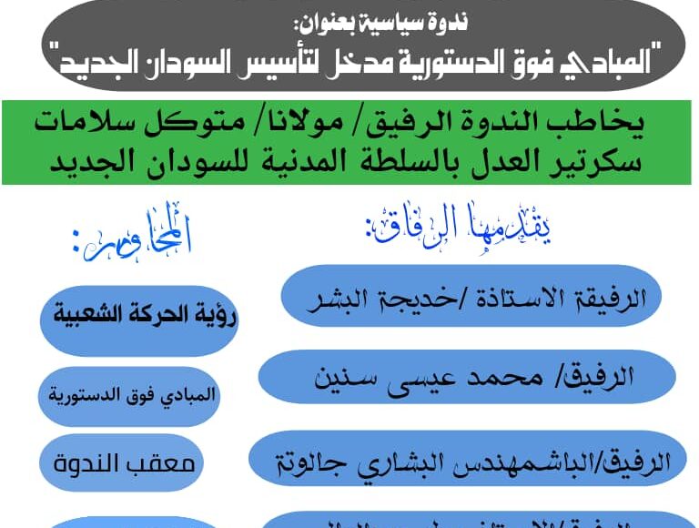 تدعوكم الحركة الشعبية لتحرير السودان لحضور ندوة سياسية بعنوان (المبادي فوق الدستورية مدخل لتأسيس السودان)